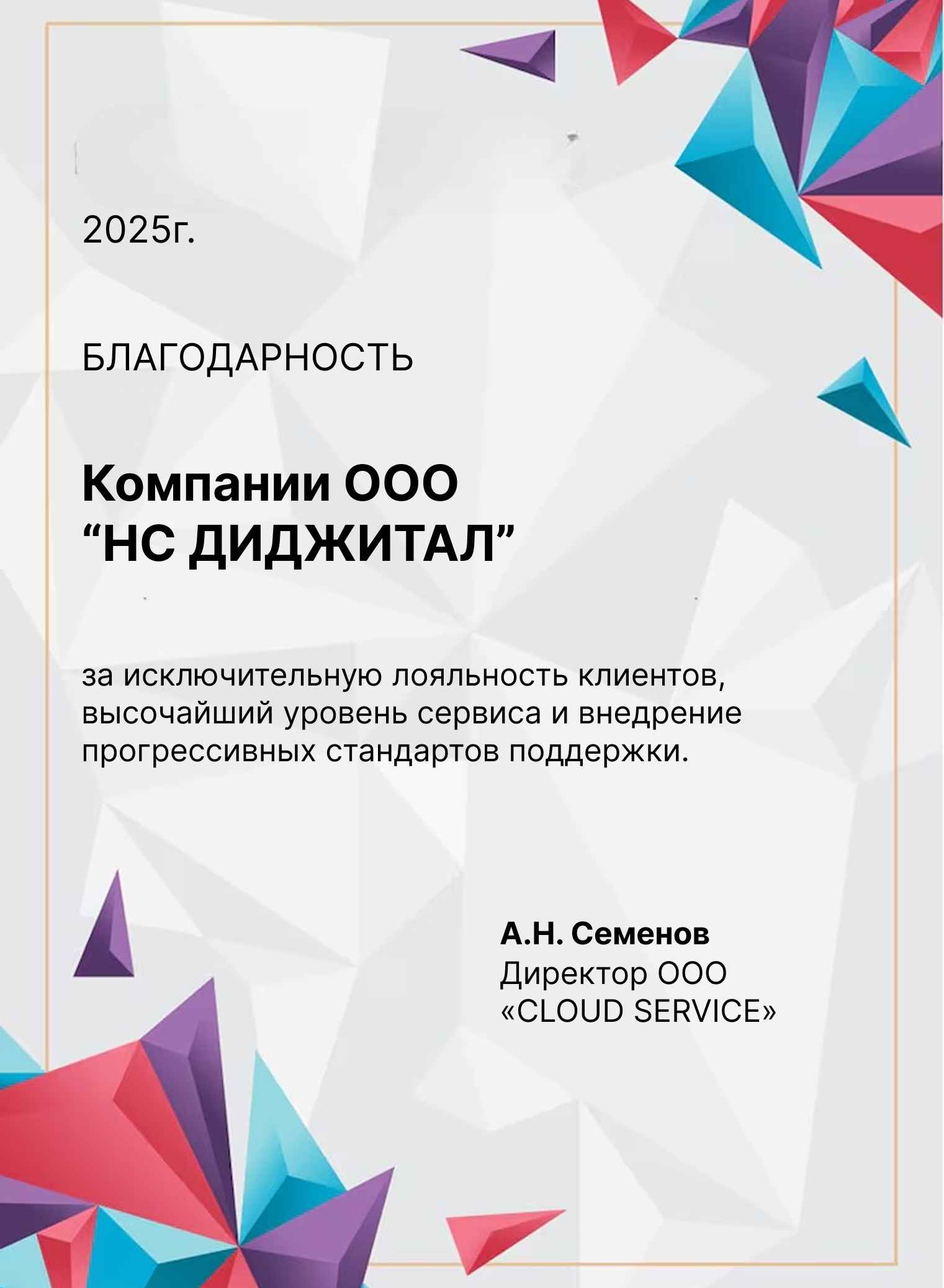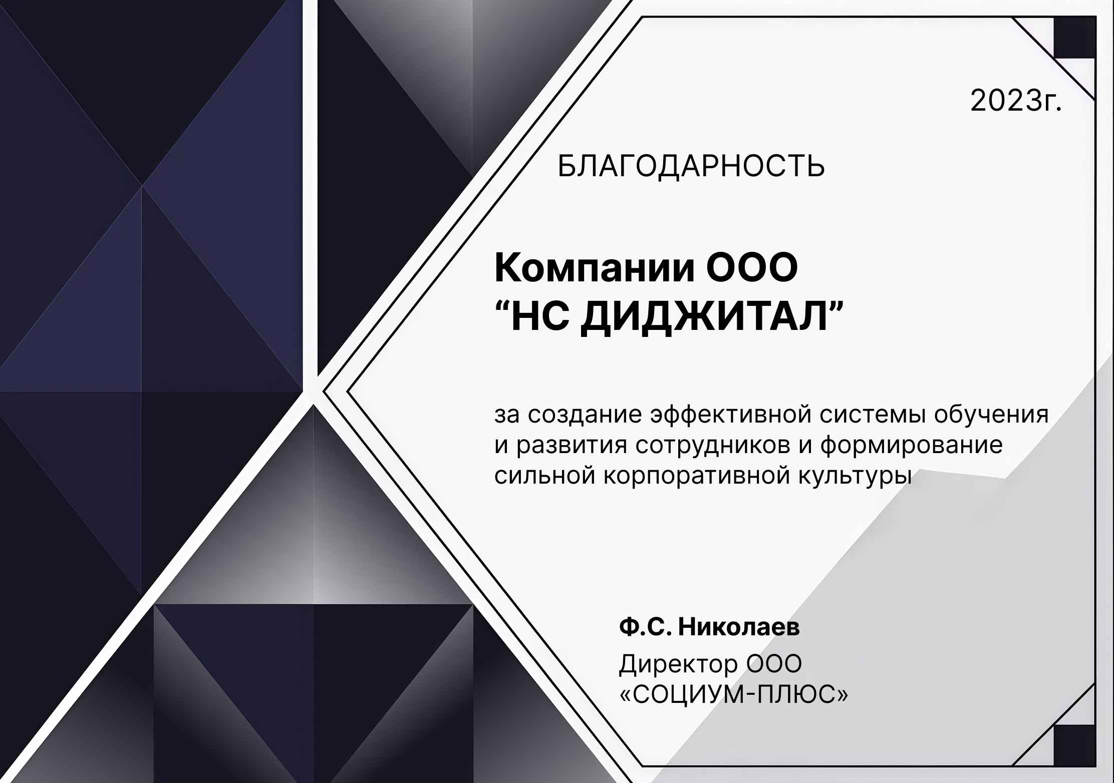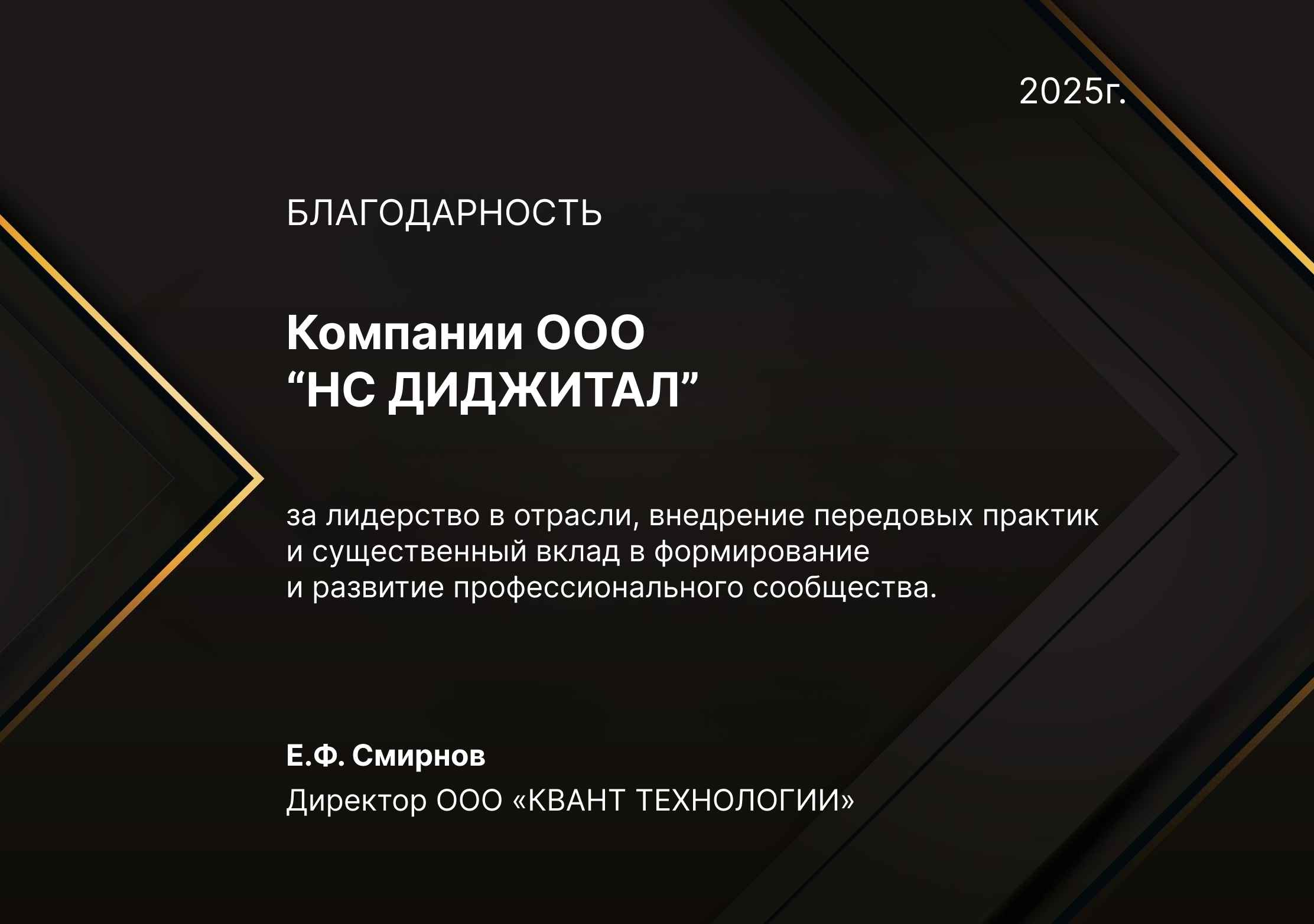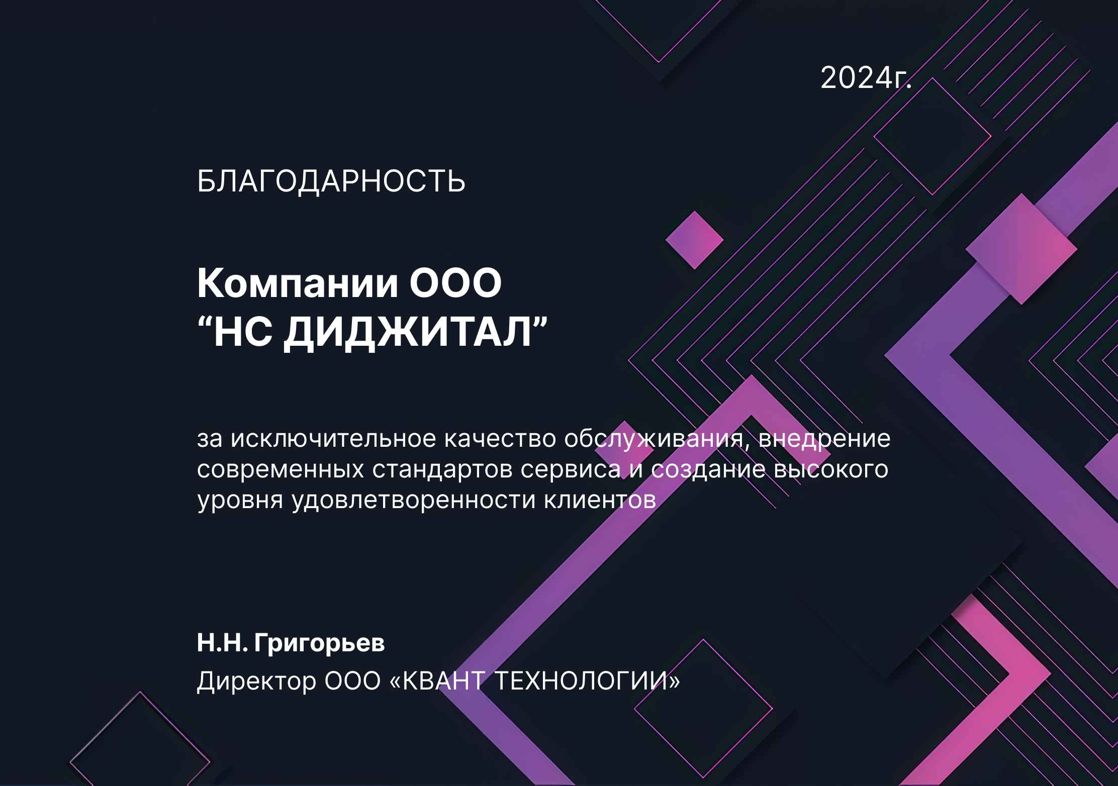 Благодарности компании НС Диджитал