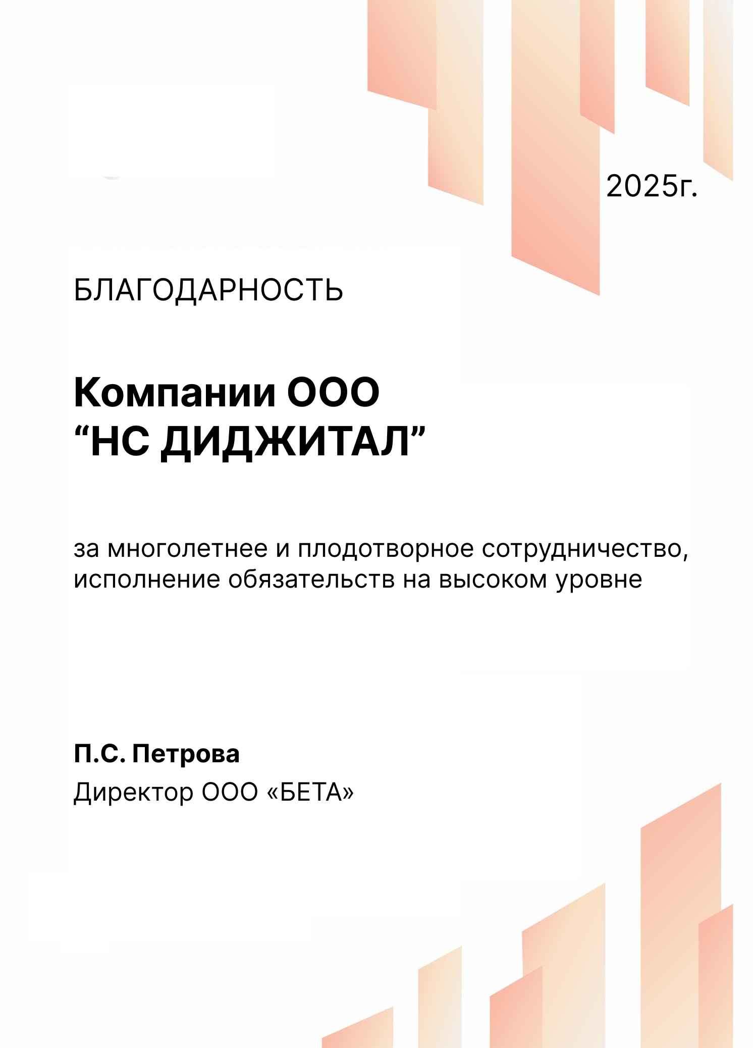 Благодарность за многолетнее и плодотворное сотрудничество